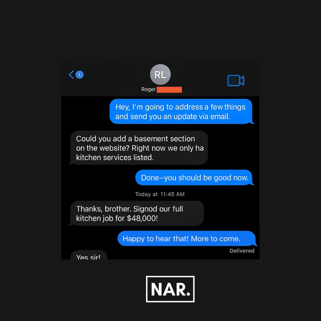 "Just three days after starting with NAR, I got my first big call, and 50–75% of my business now comes from this marketing. One property manager found us online, and a single call turned into six projects. Six months in, I’m convinced — this works."